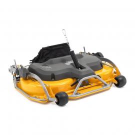 Газонокосильная дека выбирается в зависимости от ширины, которая Вам подходит, от 95 до 125 сантиметров. Цеповая косилка для бурьяна и кустарника шириной 95 сантиметров. Все газонокосильные деки поднимаются в вертикальное сервисное положение для очистки от налипшей травы и обслуживания, благодаря этому они не поддаются коррозии, как на садовых тракторах, на которых газонокосилку невозможно полностью очистить. Для того чтобы очистить деку, достаточно обдать ее водой из мойки высокого давления.